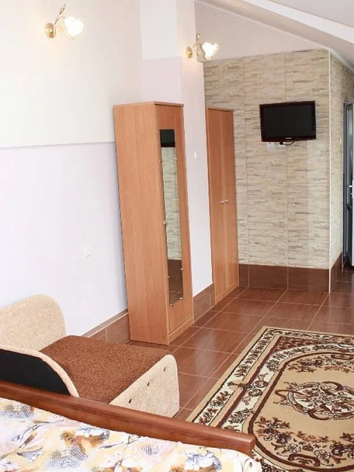 Все комнаты делятся на 2 категории "Семейная с балконом" и "Большая семейная". В "Большой семейной" больше площадь и больше спальных мест и гарантированная парковка во дворе.