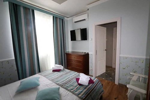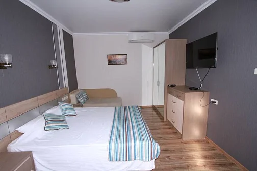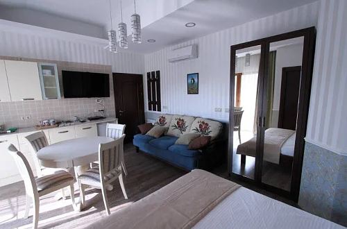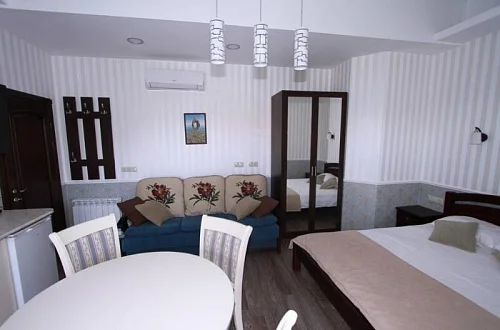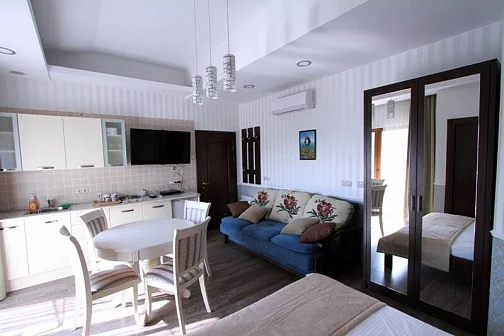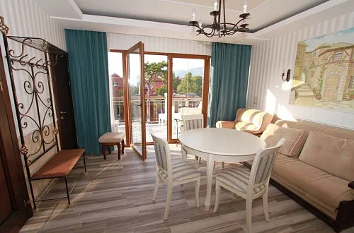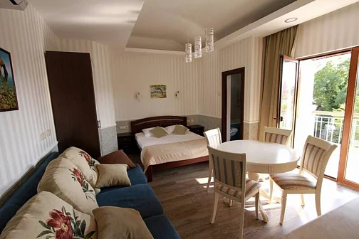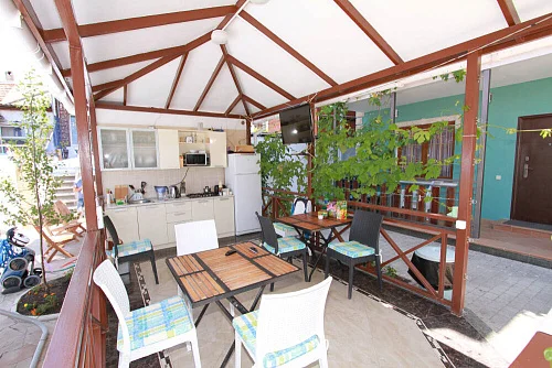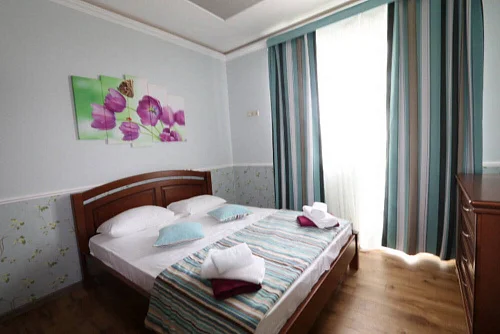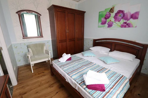 Предлагаем для отдыха отель "Оазис-Юг", который располагает 10 номерами, начиная от 2х-местных номеров класса люкс и заканчивая 3х-комнатными апартаментами 6ти местными. Большинство номеров с индивидуальными кухнями, многие номера имеют собственные балконы. На территории отеля имеется летняя кухня со всеми необходимыми принадлежностями. Отель расположен в самом популярном месте Геленджика на улице Красногвардейской, в районе Толстого мыса, где море наиболее чистое. Время до пляжа занимает средней походкой 4-5 минут и в тоже время на необходимом расстоянии, чтобы не было слышно громкой музыки с Набережной. В 5 минутах ходьбы имеется вся необходимая инфраструктура, Сбербанк, продуктовый рынок, круглосуточный гастроном. Также на территории имеется мангал для приготовления шашлыков и очень много столиков для отдыха.