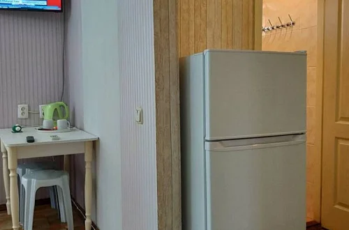 - Общая кухня с посудой, варочной панелью, микроволновкой и стиральной машиной.