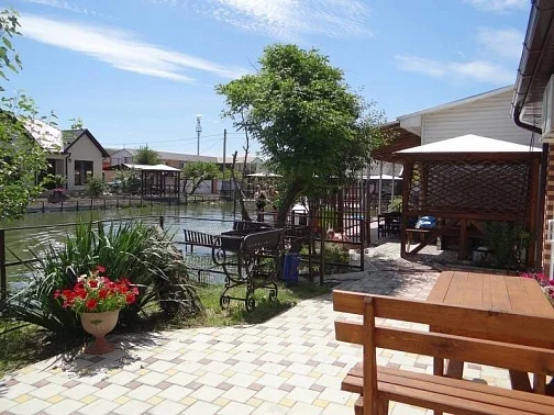 Для наших гостей на территории гостевого дома находится живописное озеро, которое жарким днем дает прохладу, а утром и вечером дарит удовольствие от рыбалки. На берегу озера расположены беседки, лежаки, лавочки, а деревья даже в самый жаркий день спрячут вас от зноя в своей тени. Перед гостевыми корпусами обустроена просторная площадка, выложенная тротуарной плиткой. На площадке цветы, место для детских игр, качели, карусели, игрушки, стационарный мангал.