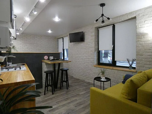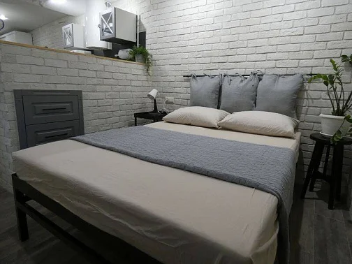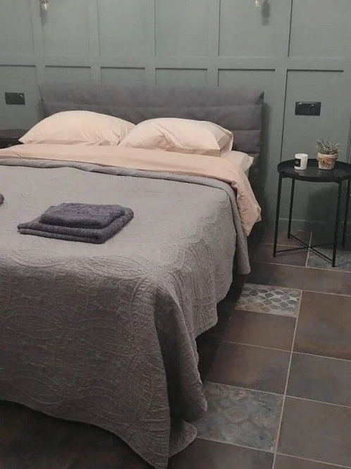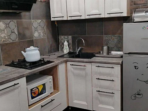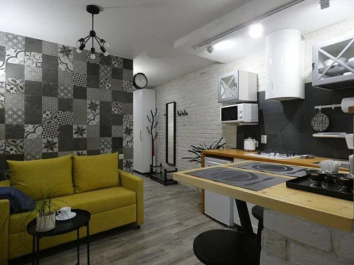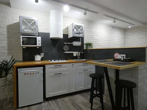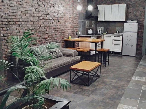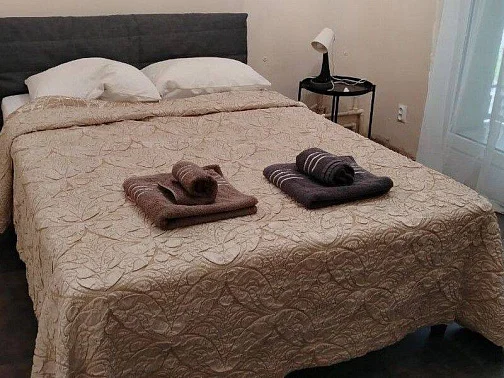 Таунхаус для семьи из 6-8 человек. На 1 этаже: уютная студия с оборудованной кухней и санузлом для комфортного отдыха 2 человек. Зона для курения.На 2 этаже: 2 спальни, большая кухня-гостиная (диван-кровать), санузел. С необходимым набором бытовой техники, посуды и постельного белья.В наличии стиральная машина - 2 шт., холодильник - 2 шт., 3 кондиционера, 3 телевизора, пылесос, микроволновая печь - 2 шт., утюг - 2 шт., выносной мангал. Перед домом парковка с видеонаблюдением на 3 машины.