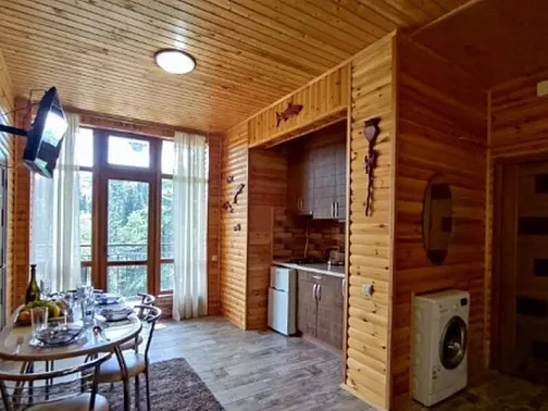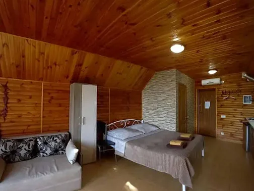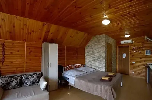 Гостевой дом представляет из себя 3х-этажный коттедж, построенный в 2016 году. Каждая комната оборудована всем необходимым для комфортного отдыха: современная мебель, кондиционер, теплый пол, плазменный телевизор, кабельное телевидение, утюг, гладильная доска, фен, плита для приготовления пищи, электрочайник, холодильник, посуда, сан узел, душевая, вода горячая и холодная постоянно, Wi-Fi интернет.