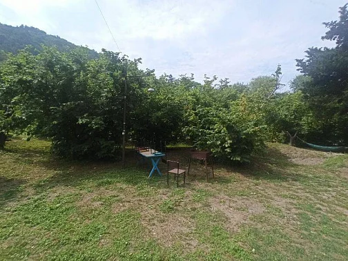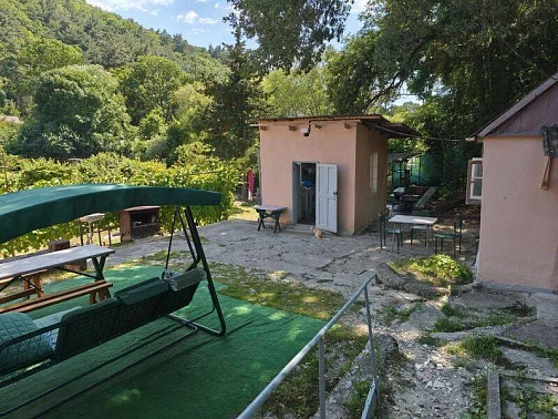 На территории-большой зелёный двор, открывающий вид на горы. Здесь приятно проводить время: есть качели, столы для отдыха и тёплых вечерних посиделок. Это место подойдёт тем, кто ищет спокойный, осознанный отдых-без шума и суеты, но с морем, лесом и настоящей природой рядом.