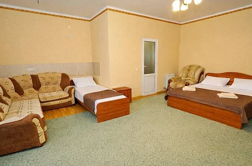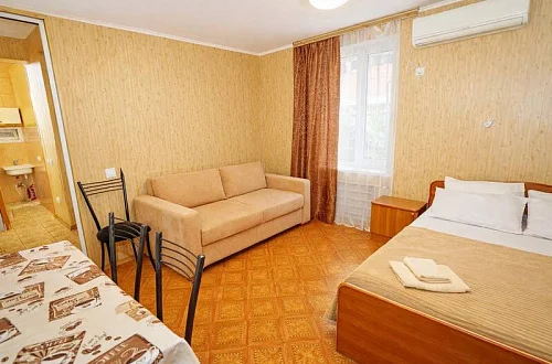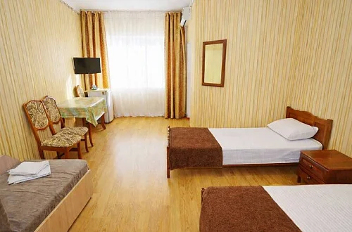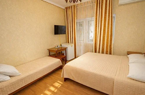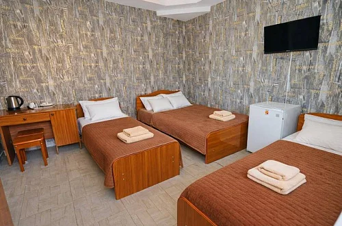 В нашем гостевом доме вас ждут уютные номера, оформленные в современном стиле. Каждый номер оснащен всем необходимым для комфортного проживания: кондиционером, телевизором, холодильником и бесплатным Wi-Fi.