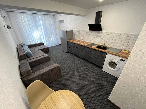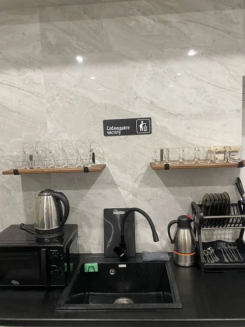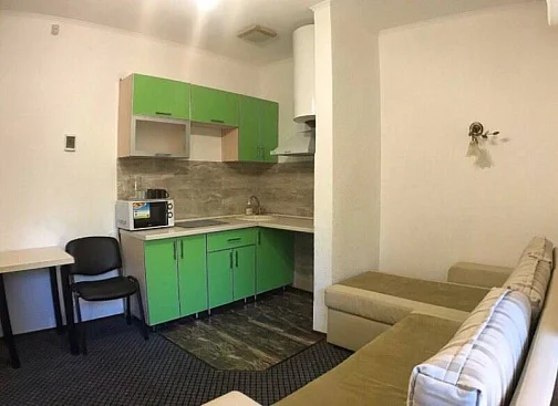 Питание: кухня в апартаментах (самостоятельно) + кафе рядом