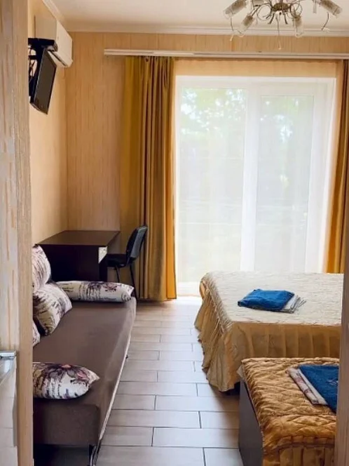 Номерной фонд Гостевой дом "Афродита" предлагает своим гостям апартаменты повышенной комфортности, созданные для самого взыскательного вкуса. К вашим услугам: 2х-местные номера: Уютные номера для комфортного отдыха вдвоем. 3х-местные номера: Идеальны для небольшой семьи или компании друзей. 4х-местные номера: Просторные номера для больших семей. Апартаменты 42 кв.м: Просторные и современные апартаменты с полным набором удобств. 2х-комнатные люксы 64 кв.м: Роскошные люксы с двумя комнатами, где есть все необходимое для незабываемого отдыха. Все номера и апартаменты оснащены бесплатным Wi-Fi, спутниковым телевидением с более чем 100 каналами, кондиционером, а также собственным душем и туалетом с круглосуточной подачей горячей и холодной воды. В каждом номере вас ждет приятный интерьер и все необходимое для комфортного проживания.
