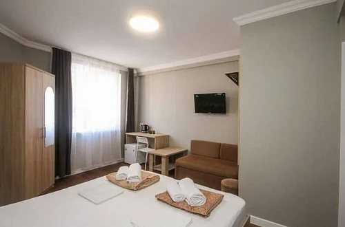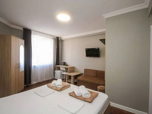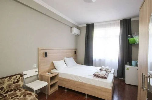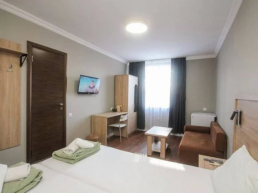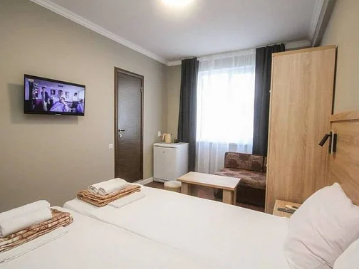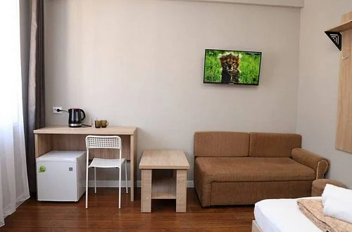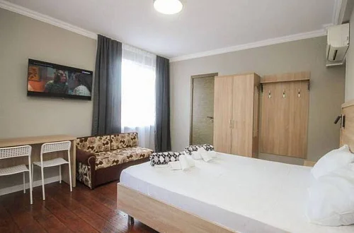 Все номера с удобствами: TV (спутниковое), Wi-Fi, кондиционер, холодильник, санузел и душевая кабина.