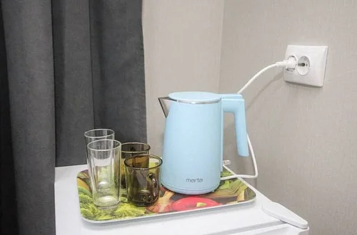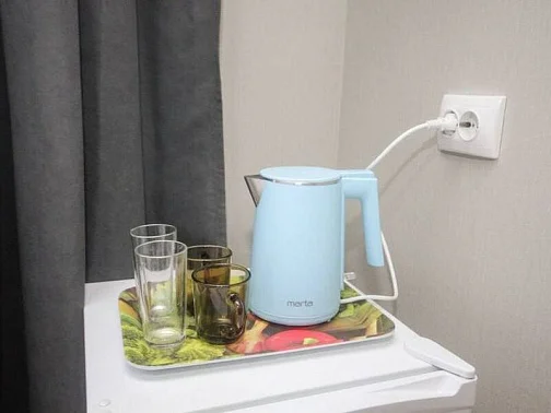 Рядом с террасой есть помещение самообслуживания с микроволновкой, чайниками, посудой и мойкой.