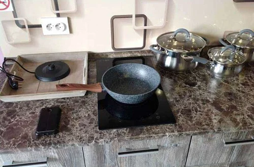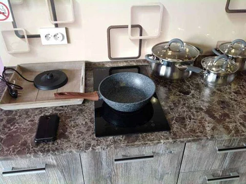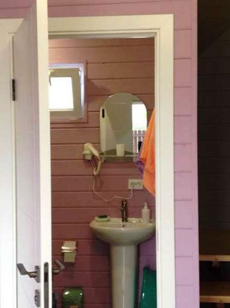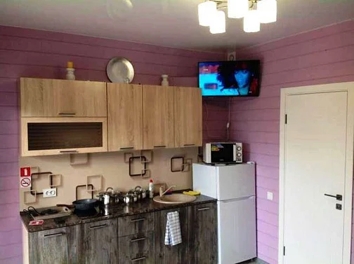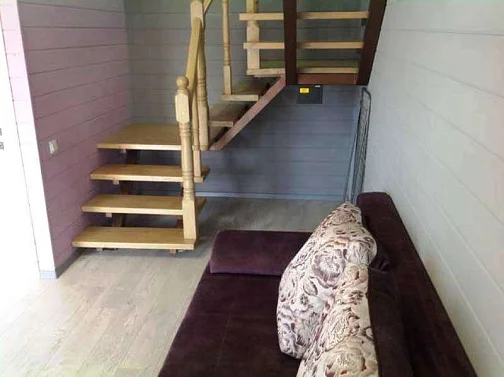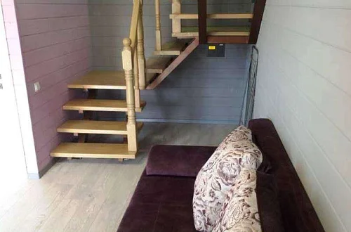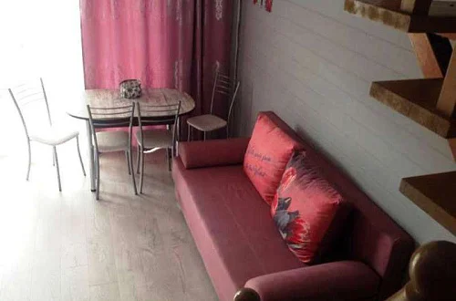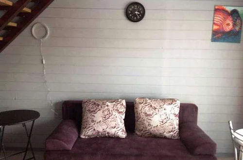 На первом этаже удобная и практичная кухня-гостиная, оборудованная всем необходимым. Также здесь располагается 2х-местный диван, стол и телевизор с цифровым телевидением.