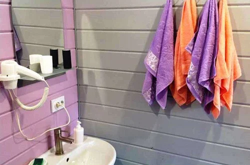 Санузел с душем, укомплектован феном, мягкими полотенцами и средствами первой необходимости. В числе удобств номера: сейф и журнальный столик.