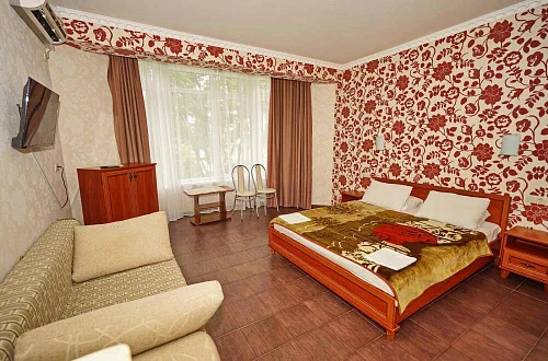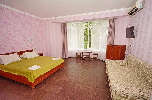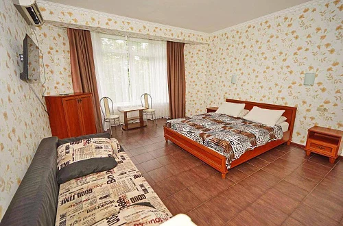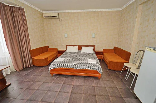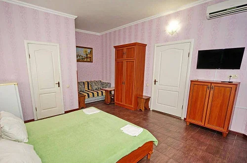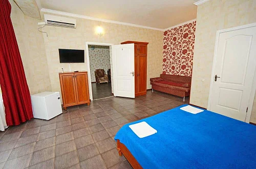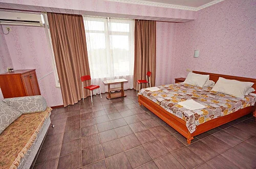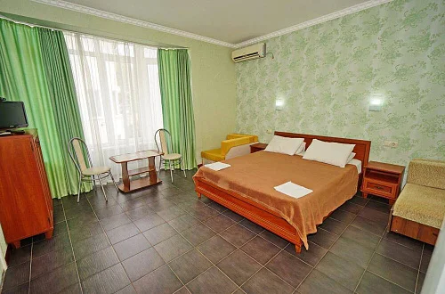 Современный дизайн гостевого дома и огромные комфортабельные номера, позволят Вам провести свой отдых на высшем уровне, а завораживающий вид на море с панорамных окон Вашего номера, не оставит Вас равнодушными. Номерной фонд представлен однокомнатными и двухкомнатными номерами, со всеми удобствами для размещения от 2 до 8 человек. В каждом номере есть необходимый набор мебели, телевизор, холодильник, чайник, кондиционер, Wi-Fi, санузел и душевая.
