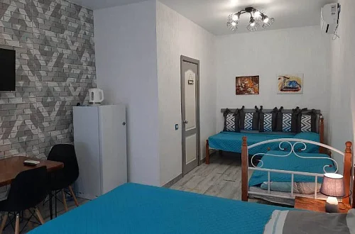 В номерах имеется телевизор, кондиционер, холодильник и Wi-Fi. В комнате размером 20 кв.м большая двуспальная кровать и две односпальные кровати, по запросу предоставляется детская кроватка. Благоустроенный санузел и душевая, а также терраса, на которой так приятно выпить кофе с утра! Для гостей, приезжающих на длительный срок, предоставляется еженедельная уборка и смена постельного белья!
