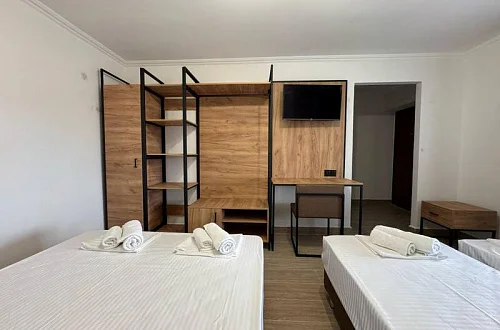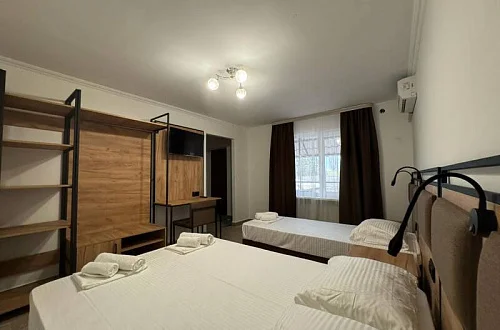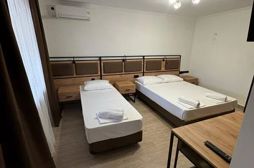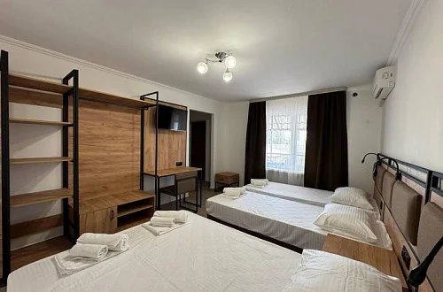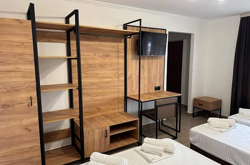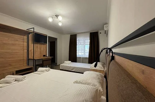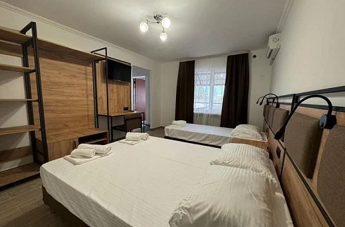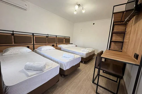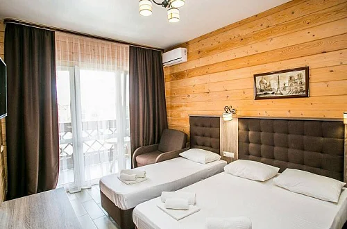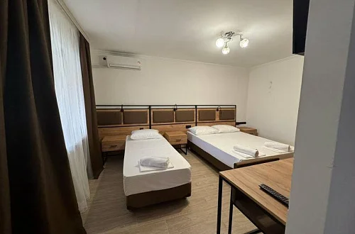 Общий фонд составляют 2 новых корпуса с 28 номерами с балконами для 2-х, 3-х и 4-местного размещения. В наших номерах есть все необходимые удобства : кондиционер, кабельное ТВ, холодильник, сейф, индивидуальный балкон, сан/узел с душевой кабиной - для вашего максимально комфортно размещения у нас в отеле "Мико".