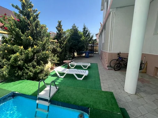 Наш гостевой дом "Моника" - это чрезвычайно удачный отдых в Витязево. На центральной площадке перед домом Вас ожидает место отдыха - бассейн, шезлонги, качели, комфортные столики под зонтиками, где вы сможете принимать расслабленно еду и напитки и следить за играми собственных малышей, в прохладной тени зеленого виноградника. По Вашему заказу мы приготовим для Вас прекрасный шашлык по нашему индивидуальному рецепту и методике приготовления.