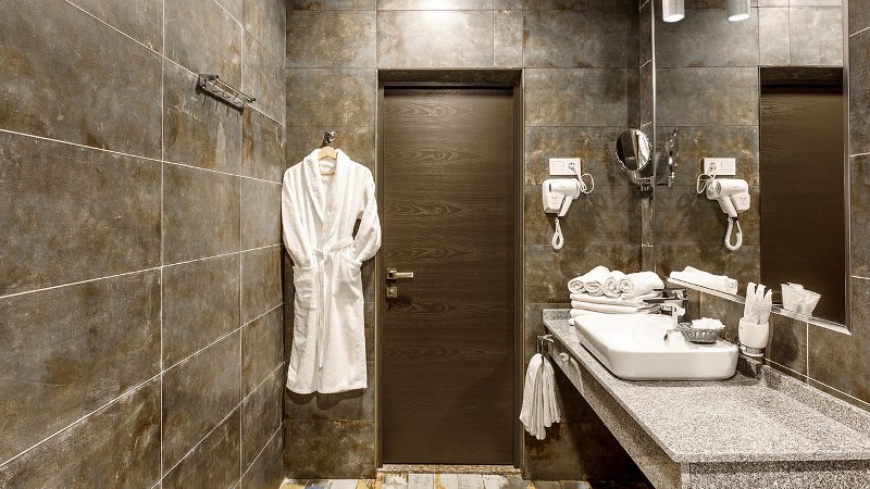 В каждом номере: парфюмерия, халаты, тапочки, фен, пляжные полотенца, сейф, гладильная доска и утюг на просторном балконе сушилка для белья и мебель.