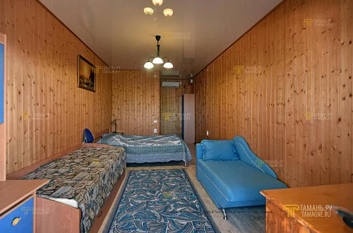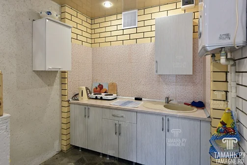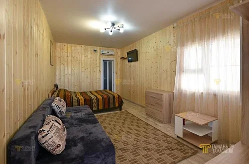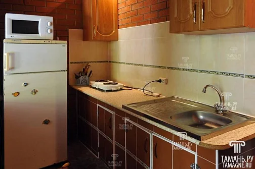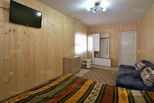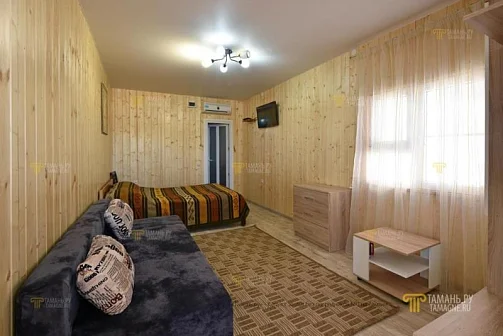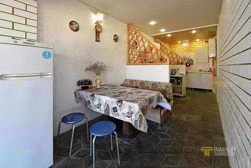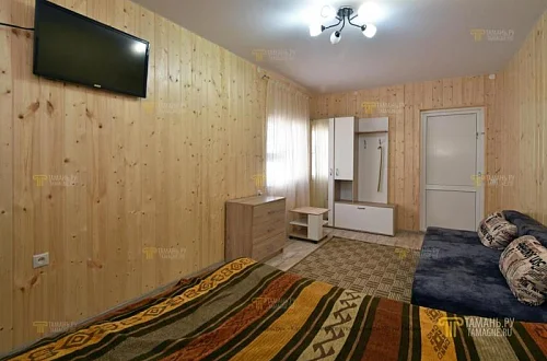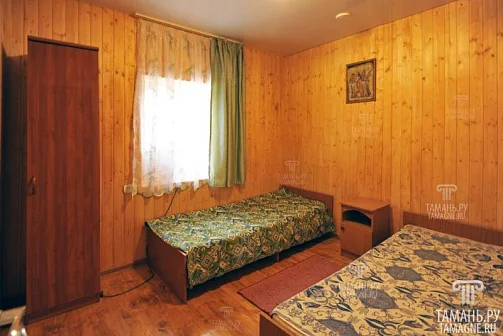 Домик находится на базе отдыха "Кавказ" в станице Голубицкой. Первая от моря линия застройки. До моря всего минута ходьбы!
