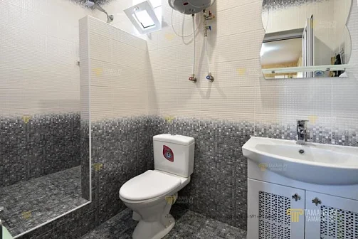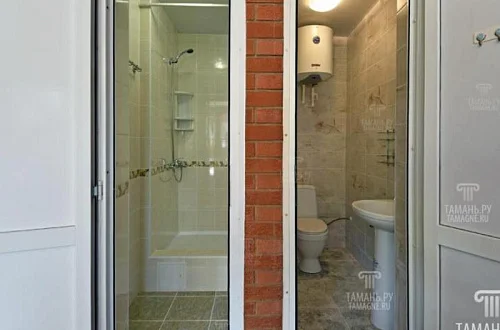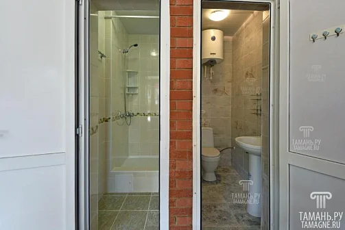 Сдаётся дом (вход с южной стороны) и три благоустроенных 3х-, 4х-местных номера на 2 этаже (отдельный вход с северной стороны). У обоих вариантов большие веранды на свежем воздухе для отдыха и приёма пищи. В доме (первый этаж, южный вход) три комнаты (2-4 места). Установлены кондиционеры, телевизор, санузел с душем, стиральная машина (автомат), кухня со всем необходимым. Дом без хозяев. Одновременное проживание не более 8 человек. В номерах (2 этаж, северный вход - общий для трех номеров), довольно просторная терраса, балкон. В каждом номере санузел, сплит-система, холодильник, телевизор, мини-кухня. На 3 номера - 2 кухни. Возможна установка дополнительного места.