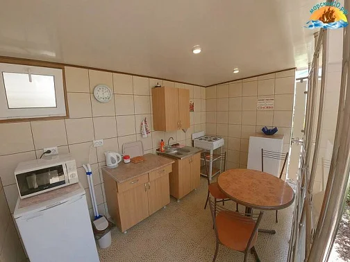 Во всех, без исключения, номерах и коттеджах Вы найдёте всё, что нужно для комфортного проживания: ЖК-телевизор (20 каналов), сплит-система, холодильник, отдельный санузел с накопительным водонагревателем. Отдельная сушилка для белья для каждого номера или коттеджа. На кухнях: полный набор посуды и столовых приборов, мойка + сушилка, микроволновка, газовая печь, электрический чайник.
