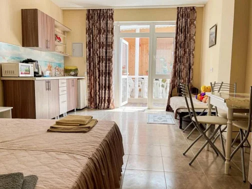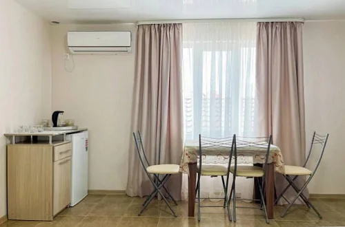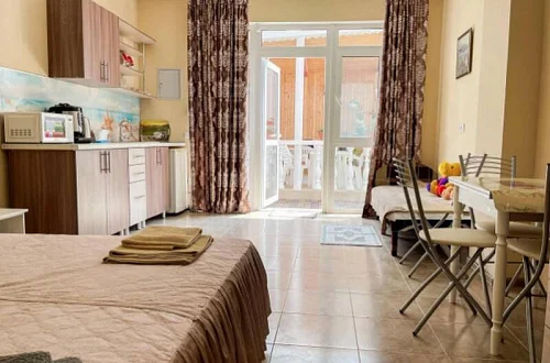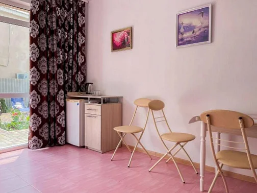 Имеется полностью оборудованная, благоустроенная кухня для самостоятельного приготовления пищи (холодильники, посуда, плита). В шаговой доступности от нас располагаются: центр села детской площадкой, , кафе, магазины. Во всех номерах независимо от категории есть телевизор, кровати, кондиционер, гардеробная, зеркало, стол, Wi-Fi интернет. Говорить о преимуществах отдыха у нас можно долго, лучше приезжайте и наслаждайтесь отдыхом у моря! Добро пожаловать на отдых в Поповку!!!