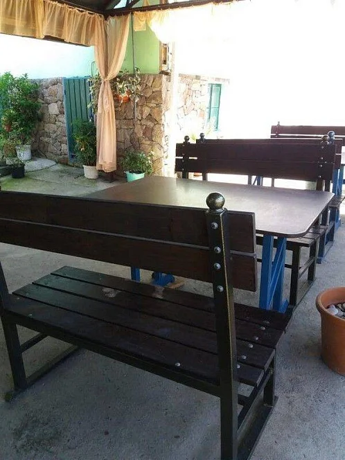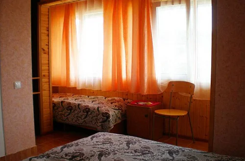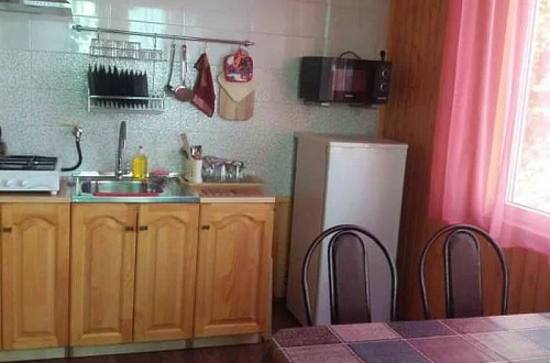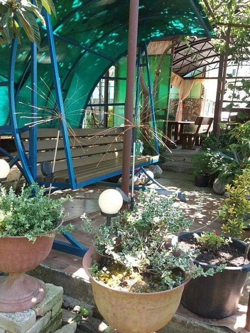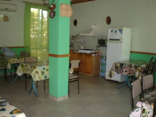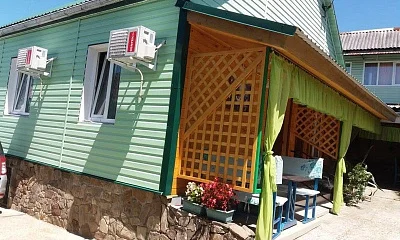 Гостевой дом "На Фруктовой" состоит из 3 отдельно стоящих зданий. Имеется домик в саду, состоит из 2 комнат (2х-местные номера), на веранде есть кухня. В каждой комнате имеется кондиционер, телевизор и санузел + душевая. Очень удобно для семьи или компании из 4 человек. Большой просторный двор с цветами и тропическими растениями. Также во дворе 4 стола. На территории расположена кухня (отдельное здание) с 8 столами телевизор, холодильник, СВЧ, газ. плита, и посудой. Для самостоятельного приготовления. Также на территории имеется теннисный стол, качели, мангал, домино.