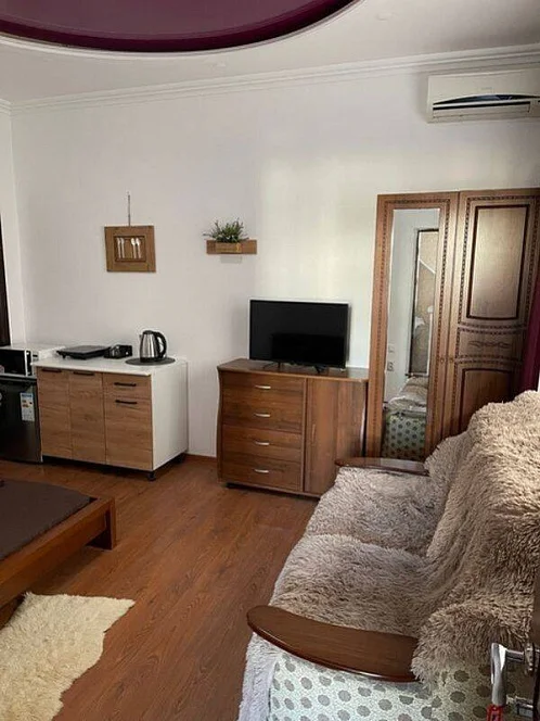 До моря можно дойти пешком за 5 минут. Вся необходимая инфраструктура в радиусе 350 метров, магазины, остановка общественного транспорта, кафе, столовые и множество других торгово-развлекательных учреждений.