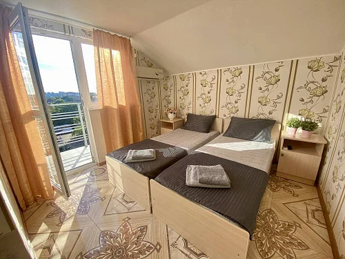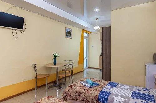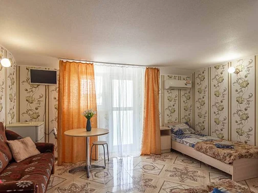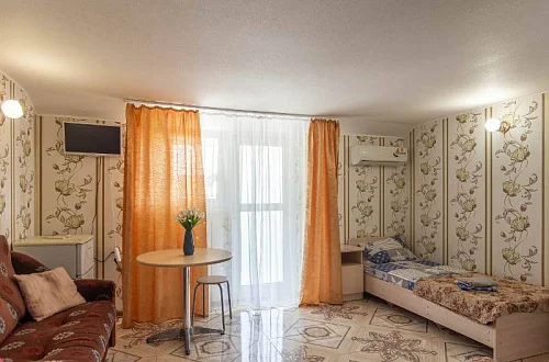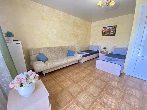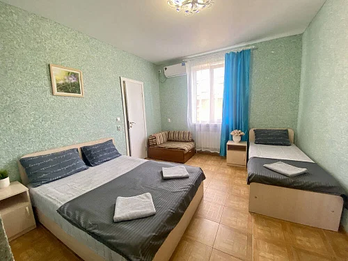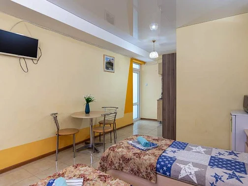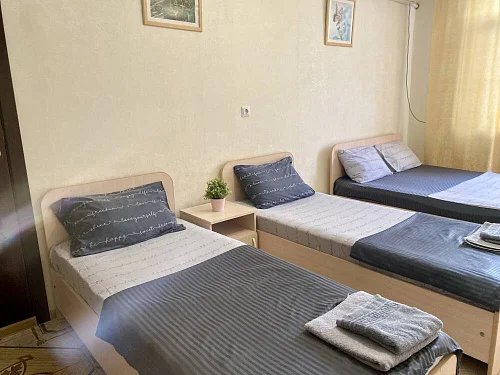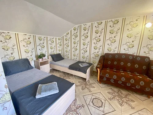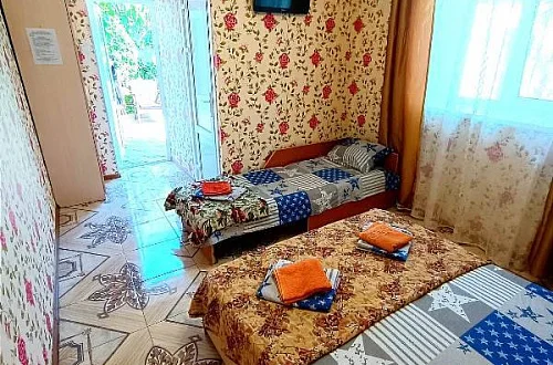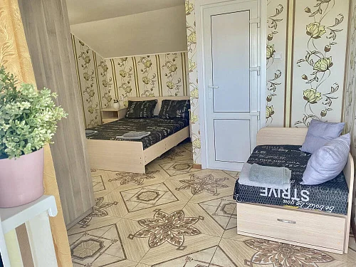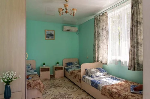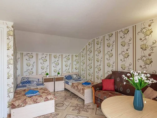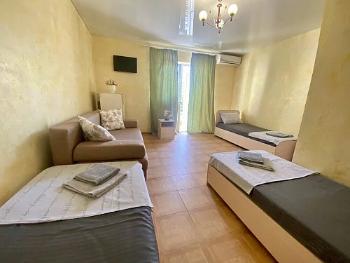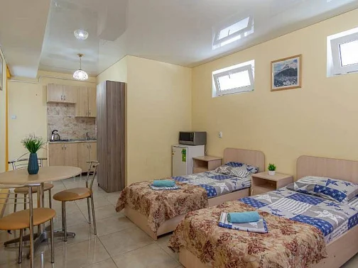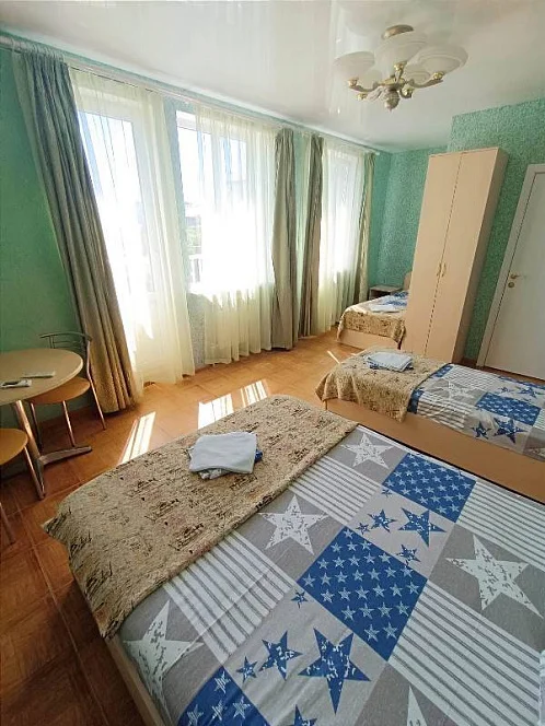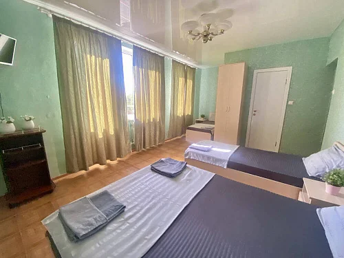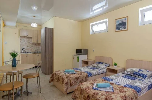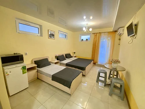 Наш гостевой дом предлагает своим гостям различные варианты размещения: от двухместных номеров до пятиместных и номеров-студий с кухнями. Во всех номерах есть санузлы, телевизоры, сплит-системы.