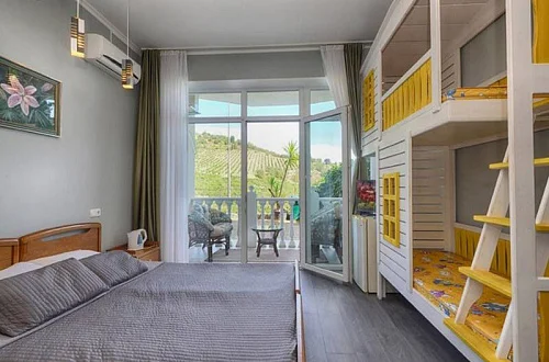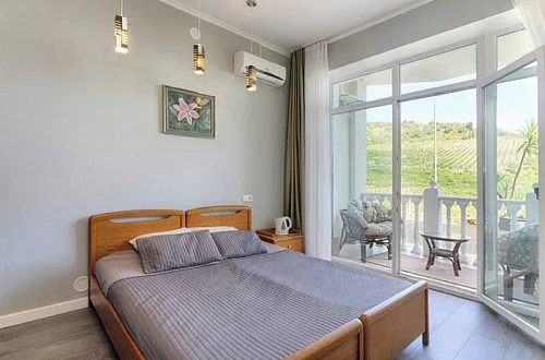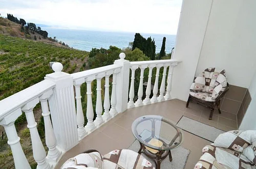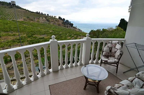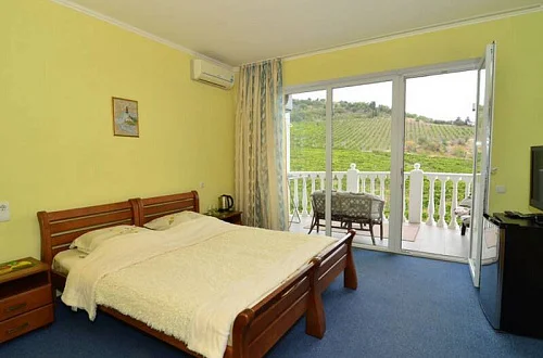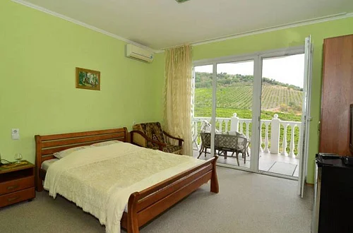 Вилла "Александрия" представляет собой 5-ти этажное здание (8 номеров), в котором располагаются 2-местные 1-комнатные и 4-местные 2-комнатные все номера с видом на море и виноградник!