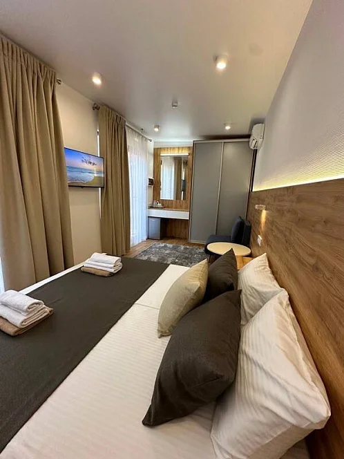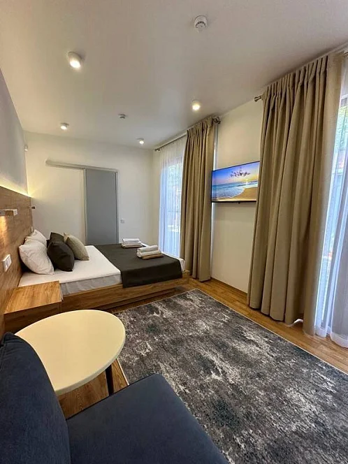 К размещению гостей представлены абсолютно новые (2025 года) и комфортабельные дома для отдыха, оборудованные всем необходимым для проживания. Часть номеров с видом на море, остальные расположены на территории базы.