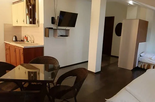 В каждом номере имеется: кровать и/или диван(ы), холодильник, система для хранения вещей, вешалки для одежды, белоснежное постельное белье и полотенца. В номерах, расположенных на солнечной стороне имеются сплит- системы.