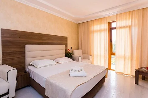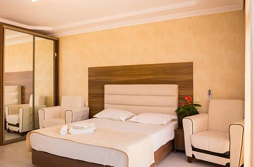 Современные и комфортабельные номера! Каждый номер отеля оснащён телевизором, удобными двуспальными кроватями, прикроватными тумбами, столиками, гардеробами, душевыми и санузлами, сплит-системами "зима-лето", рассчитанными на работу в любое время года. Номера категорий "Апартаменты" располагают также собственными кухнями.