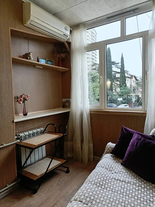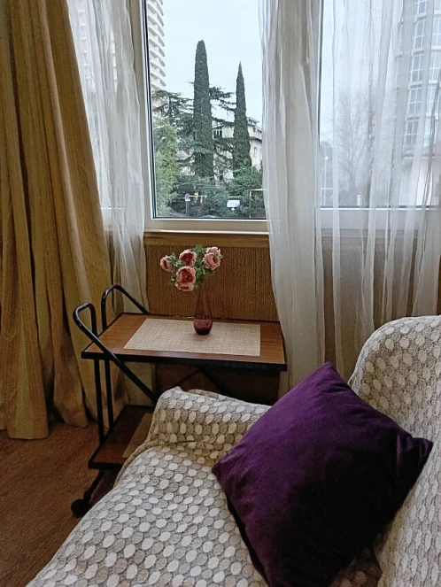 5/5 дома из окна видно МОРЕ. В комнате УДОБНАЯ двуспальная большая кровать, на лоджии диванчик с журнальным столиком для сидящего общения. КВАРТИРА не большая, светлая, чистая и уютная. Кухня отдельная. Санузел совмещён.