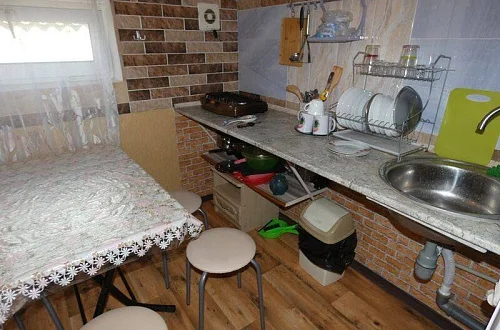 Домовладение имеет закрытый двор, на территории много тени, места для отдыха (беседки и топчан), работает Wi-Fi, во дворе есть мангал. Вода холодная и горячая постоянно.