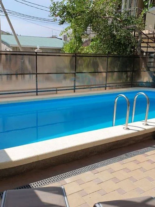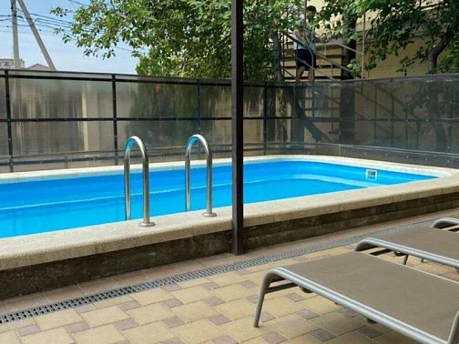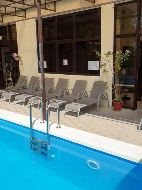 Здесь организована барбекю-зона, оборудованы места отдыха, есть детская игровая площадка, а также открытый подогреваемый бассейн с шезлонгами, в котором особенно приятно освежиться после моря или расслабиться вечером.