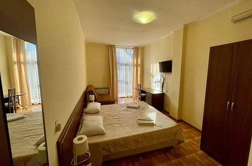 До моря-совсем близко: всего в 500 метрах расположен оборудованный галечный пляж, где есть шезлонги, раздевалки, навесы, зонтики, а также медицинский пункт и спасательный пост.