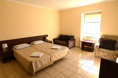 Номерной фонд: номера со всеми удобствами: мебель, двуспальная кровать или 2 раздельные, санузел (душ/туалет) в номере, кондиционер, телевизор, холодильник. Для гостей предусмотрены средства личной гигиены (гель для душа, кондиционер, шампунь, зубные щётки) и тапочки. Стойка регистрации работает круглосуточно.