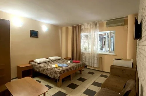В центре города Феодосия находится наш уютный гостевой дом с ухоженным зелёным двором с цветочными клумбами, большой