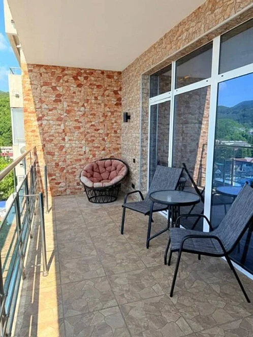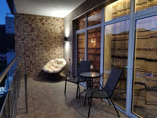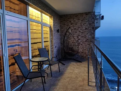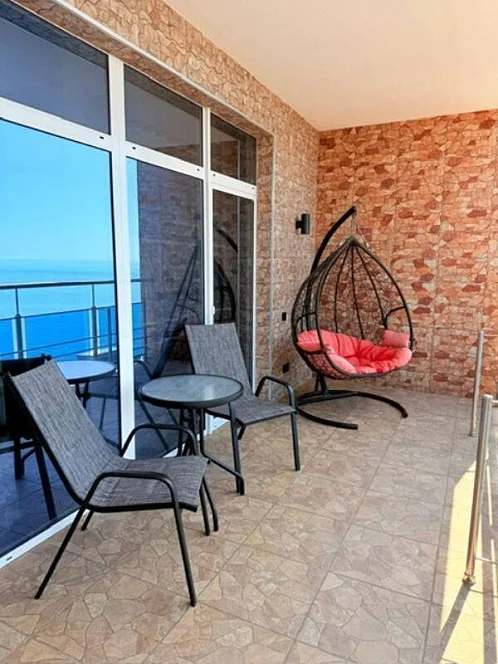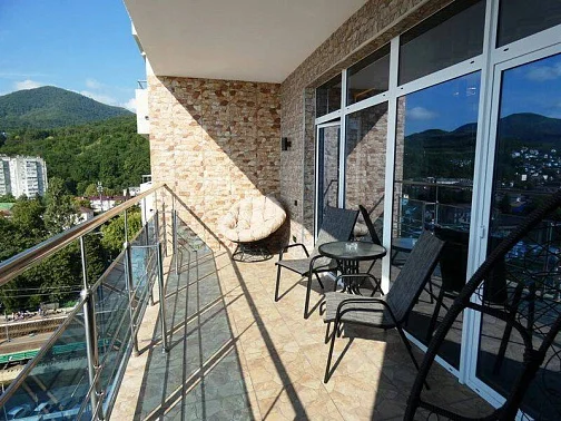 - просторный балкон с панорамным видом - каждое утро вы будете просыпаться под завораживающие картины: бескрайнее море, живописный центральный пляж и панорамные виды на всё Лазаревское. Это идеальное место для утреннего кофе или вечерних посиделок под звёздным небом.