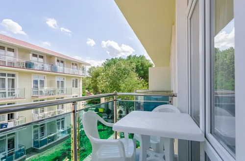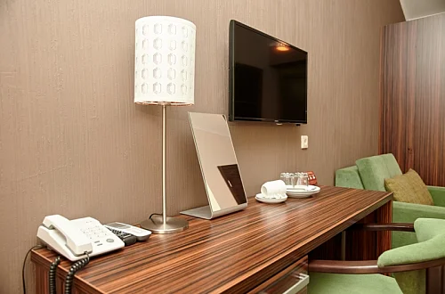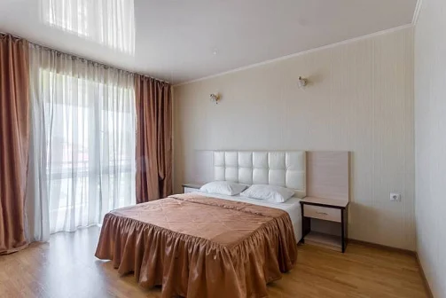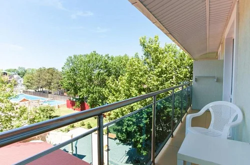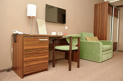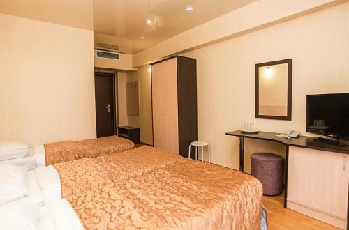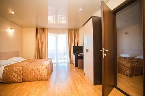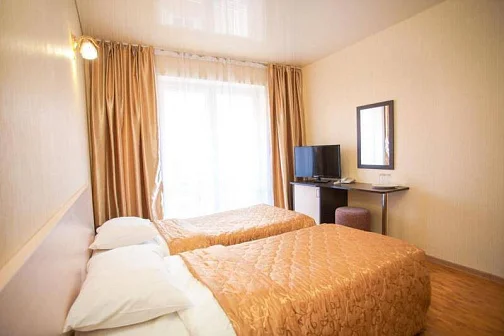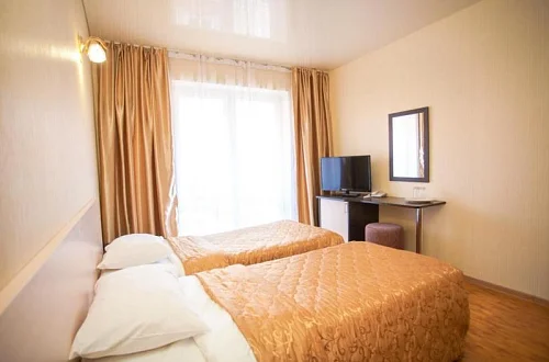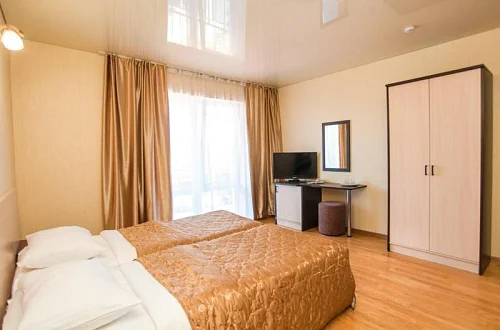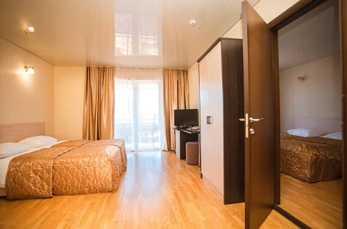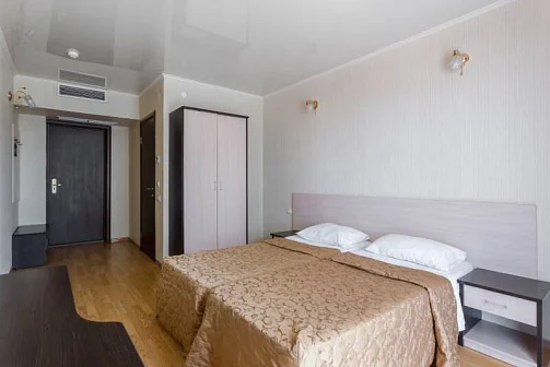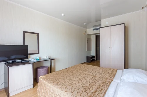 Описание номера: двуспальная кровать, письменный и журнальный столы, стулья, шкаф, сплит-система, холодильник, плазменный телевизор с наличием спутникового телевидения. Имеется бесплатный доступ к Wi-Fi. Часть номеров имеют балконы с летним столом и стульями. В некоторых номерах имеется дополнительное место для размещения – кресло-кровать.