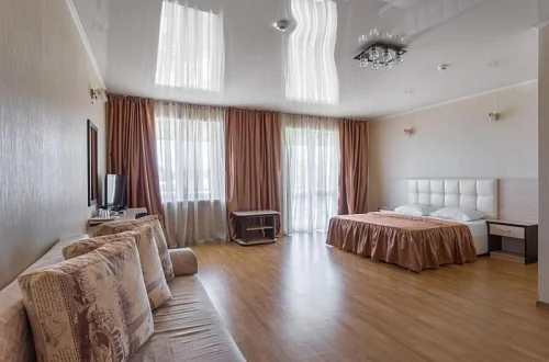 2х-местный "Джуниор сюит" (28 м2) 11 номеров. Дополнительно в ванной комнате: современная душевая кабина, фен, мягкие халаты и тапочки. Возможно размещение 2 человек на основных местах + 2 на дополнительном месте (раскладной диван).