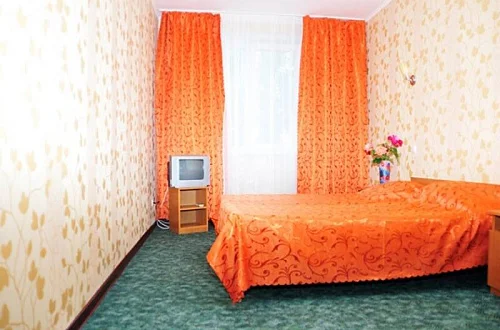 Стандартные (1-2х-местные) - 1 комната, телевизор (9 тв. программ), прикроватные тумбочки, шкаф, письменный стол, стулья, душ, туалет, раковина, горячая вода постоянно.