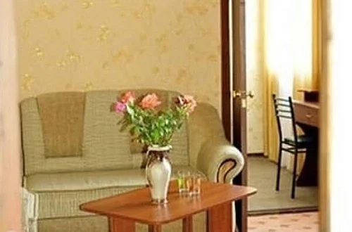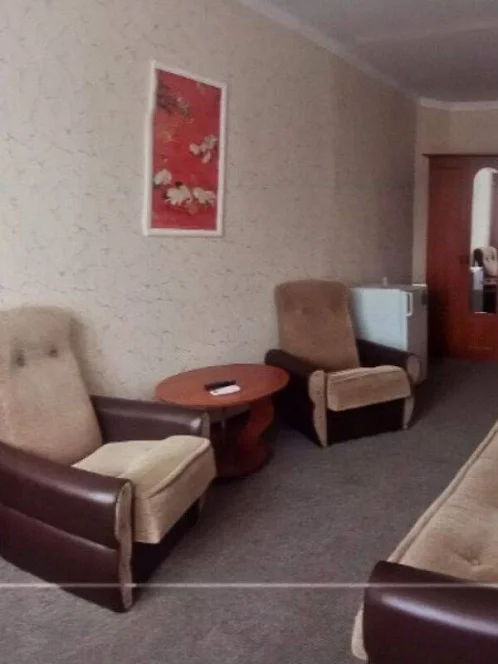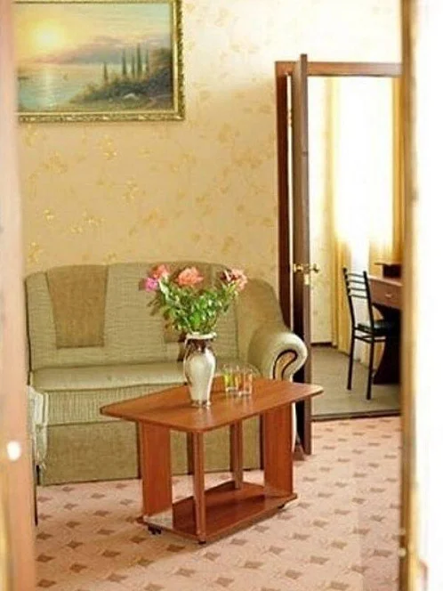 Люкс 2 комнаты (спальня, гостиная), телевизор (9 тв. программ), холодильник, кондиционер, спальный гарнитур (диван-кровать), гостиный гарнитур, прикроватные тумбочки, шкаф, душ, туалет, раковина, горячая вода постоянно.