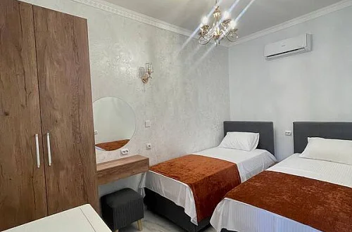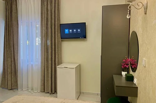 - Ванная комната: санузел, душевая кабина, туалетные принадлежности, комплект постельного и полотенец на каждого гостя, обслуживание номеров.