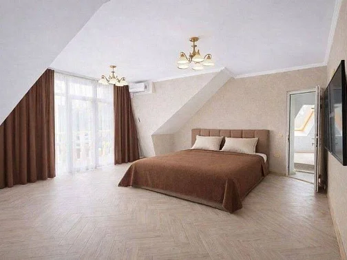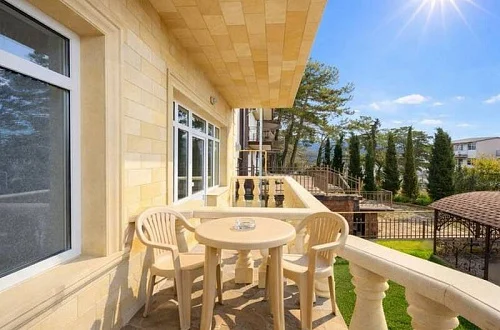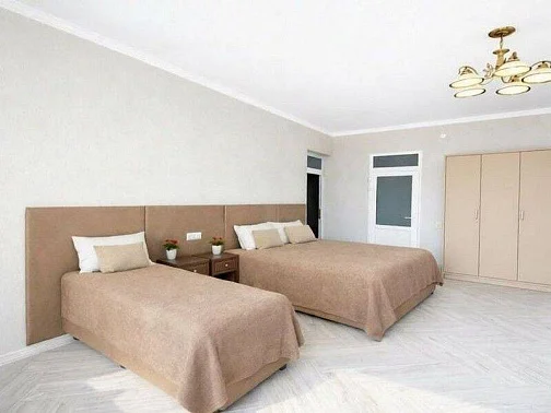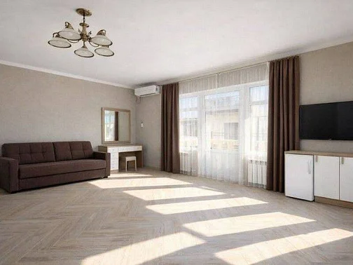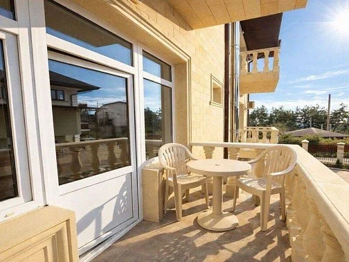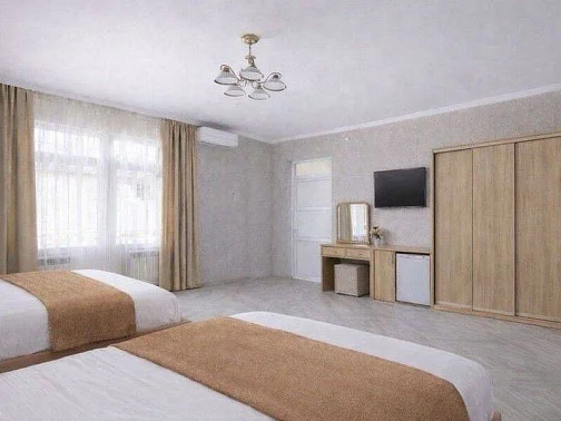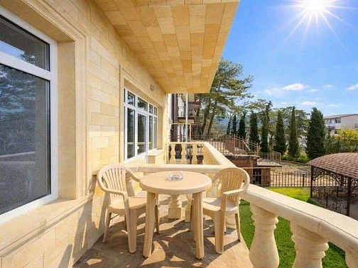 Для гостей мы подготовили новые, просторные и уютные номера с современной обстановкой, в которых приятно отдыхать после насыщенного дня у моря. Каждый номер продуман до мелочей: удобные кровати с ортопедическими матрасами, комфортные диваны, просторные комнаты, телевизор со Smart TV, а также собственный балкон со столом и стульями. С балконов открывается красивый вид на окрестности, создающий особую атмосферу южного отдыха.