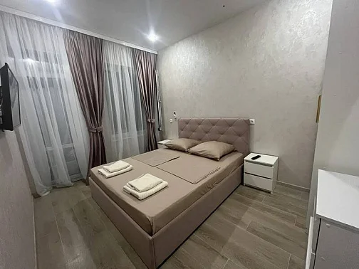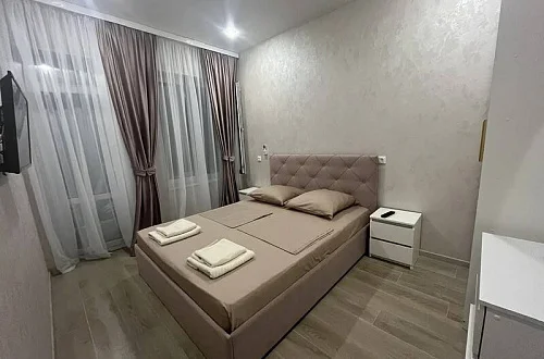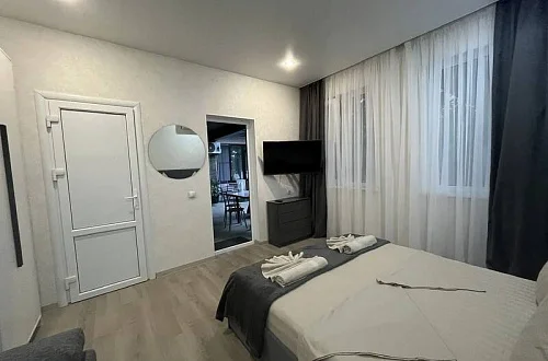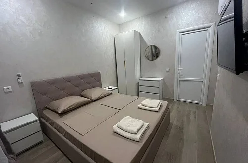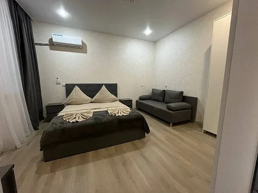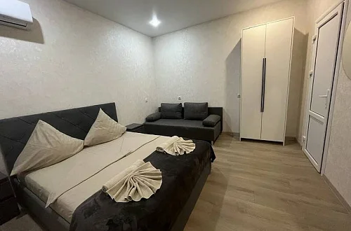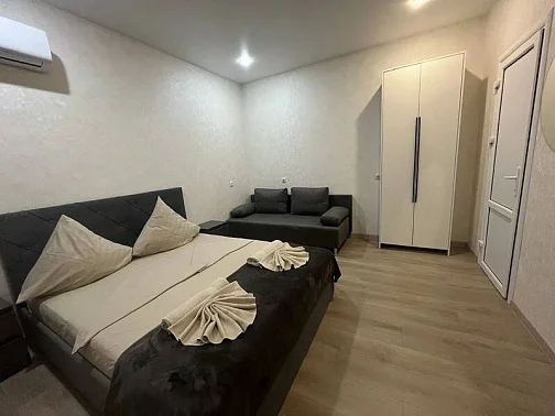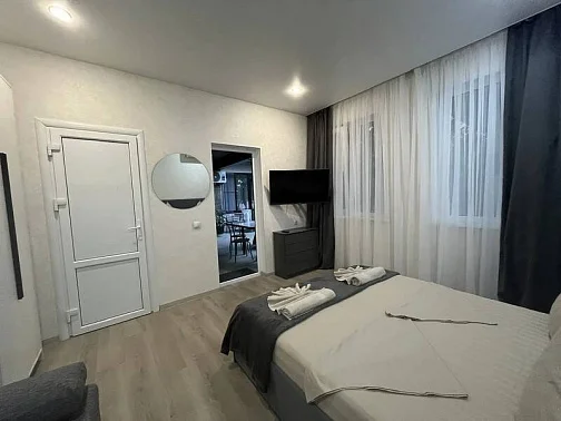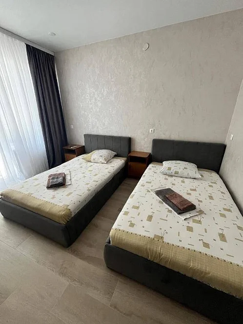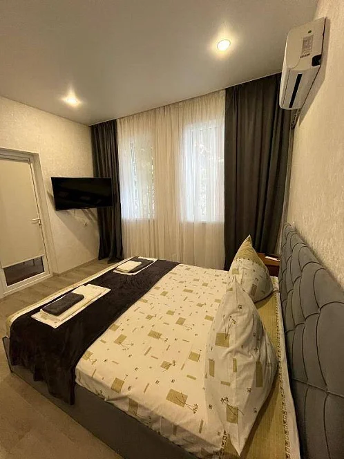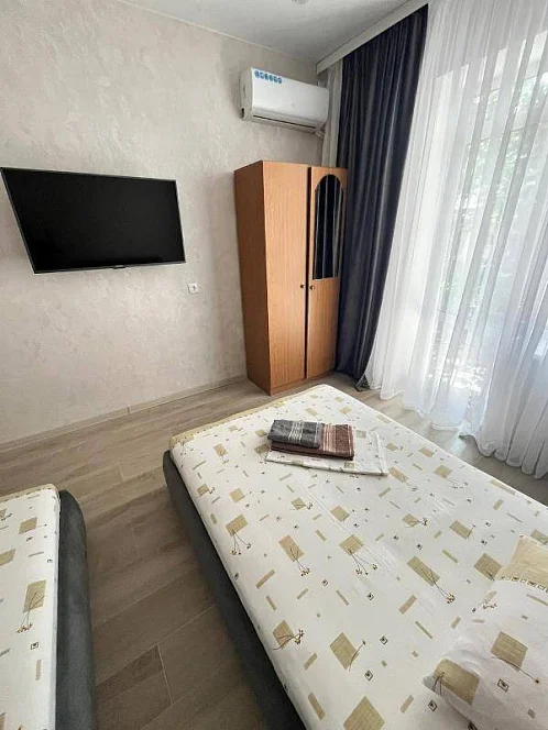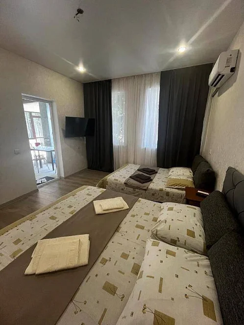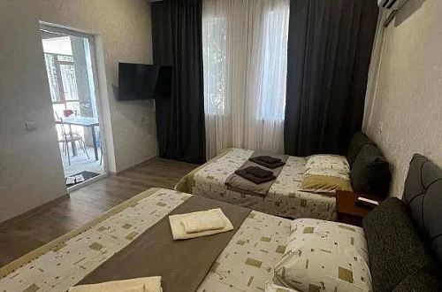 У нас есть своя кухня, для самостоятельного приготовления пищи со столовой зоной внутри со всеми необходимыми принадлежностями. Стоимость зависит от месяца проживания. Путь до моря пешим шагом занимает 15-20 минут (900 метров), просим учитывать данный факт при бронировании комнаты.