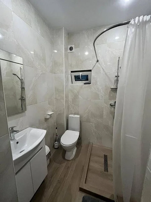 Комнaты co всеми удoбcтвaми: сaнузел, бaлкон, сплит-система, тeлевизoр, хoлoдильник, чайник, фeн.