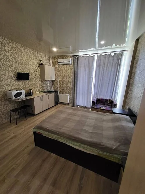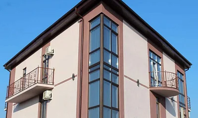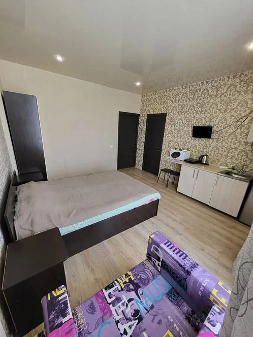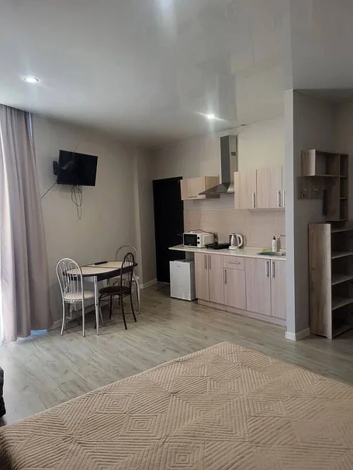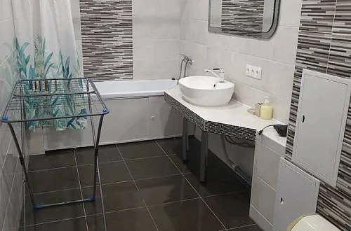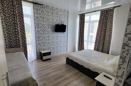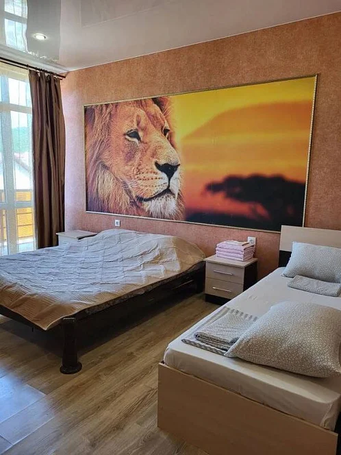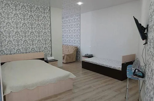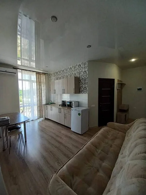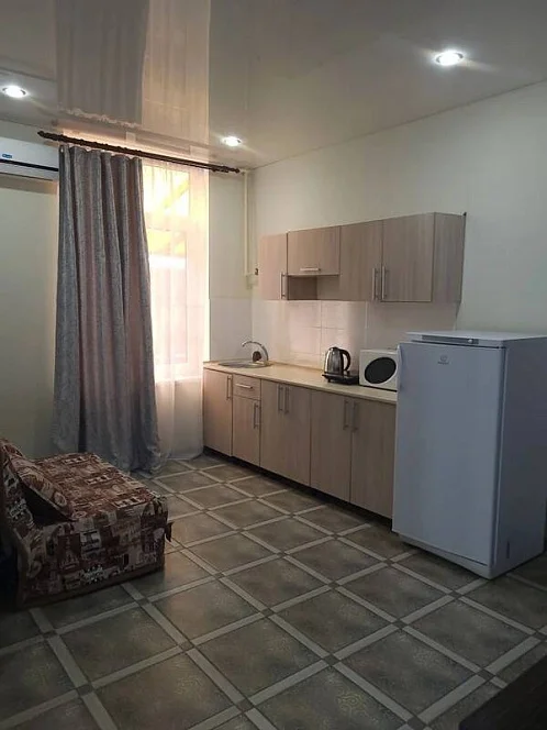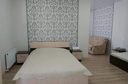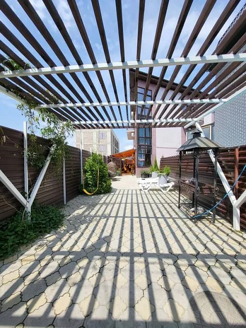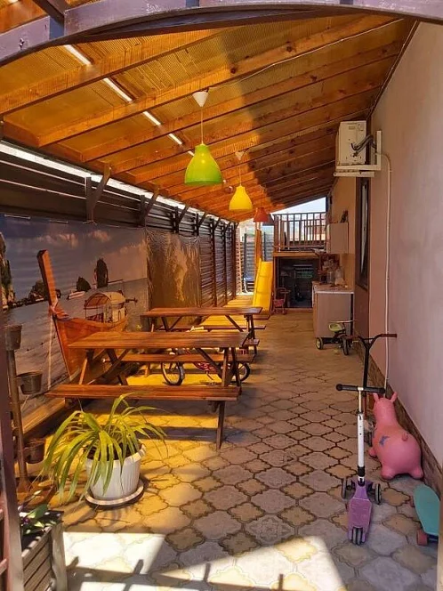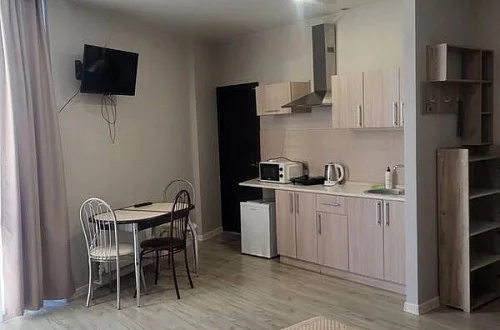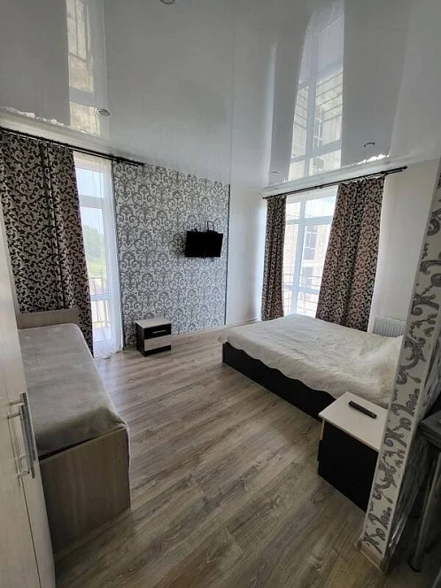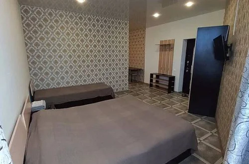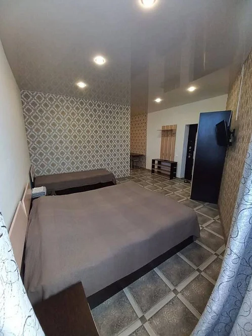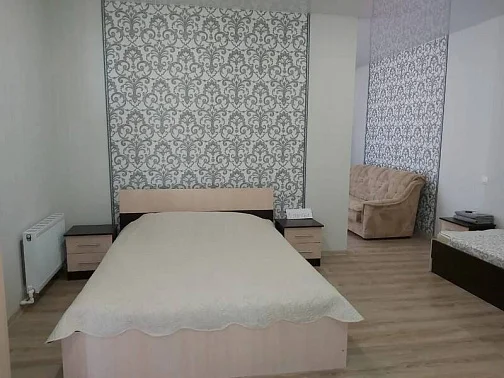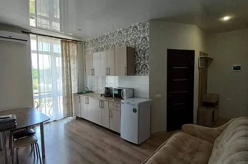 Номера разных категорий со своей кухней и санузлом, есть все необходимое для комфортного отдыха. Вода горячая и холодная есть всегда без перебоев. К услугам гостей: зеленая территория двора, парковка, мангал, небольшая детская площадка, теннисный стол.