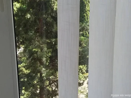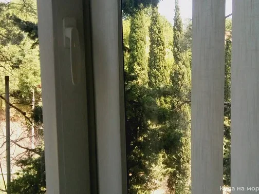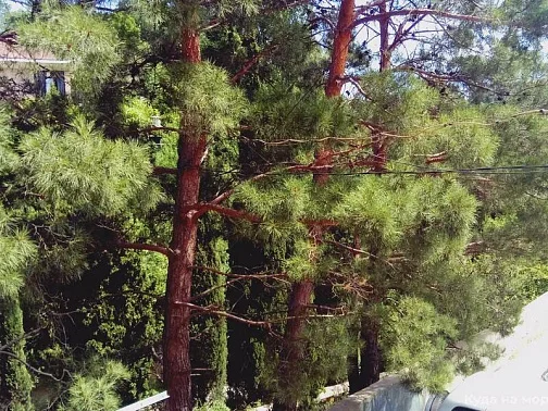 горку. Это означает, что дом расположен на возвышенности, что делает воздух здесь ещё чище, чем в центре посёлка, который находится в низине. Под окнами растут крымские сосны, как видно на фотографии. Воздух в квартире становится поистине целебным.