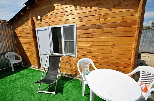Большой благоустроенный двор с изумрудной полянкой и зонами отдыха, как для взрослых, так и для юных туристов.