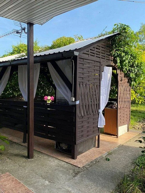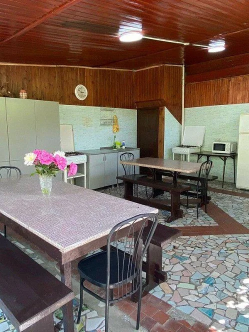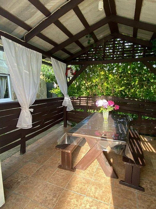 Дом расположен в спальном районе, до моря 20 минут пешком через парковую зону. На территории имеется парковка для автомобилей. Отдельная беседка, барбекю, красивый зеленый двор. Летняя кухня для приготовления пищи. В шаговой доступности (3 минуты) имеются магазины: "Магнит", "Пятерочка", "Хлебозаводской", "WildBerries", "Ozon".