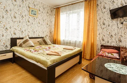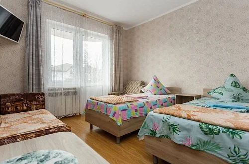В каждом номере телевизор, холодильник, сплит-система, санузел. Холодная и горячая вода-постоянно. Имеется уютная кухня со всем необходимым, для приготовления пищи.